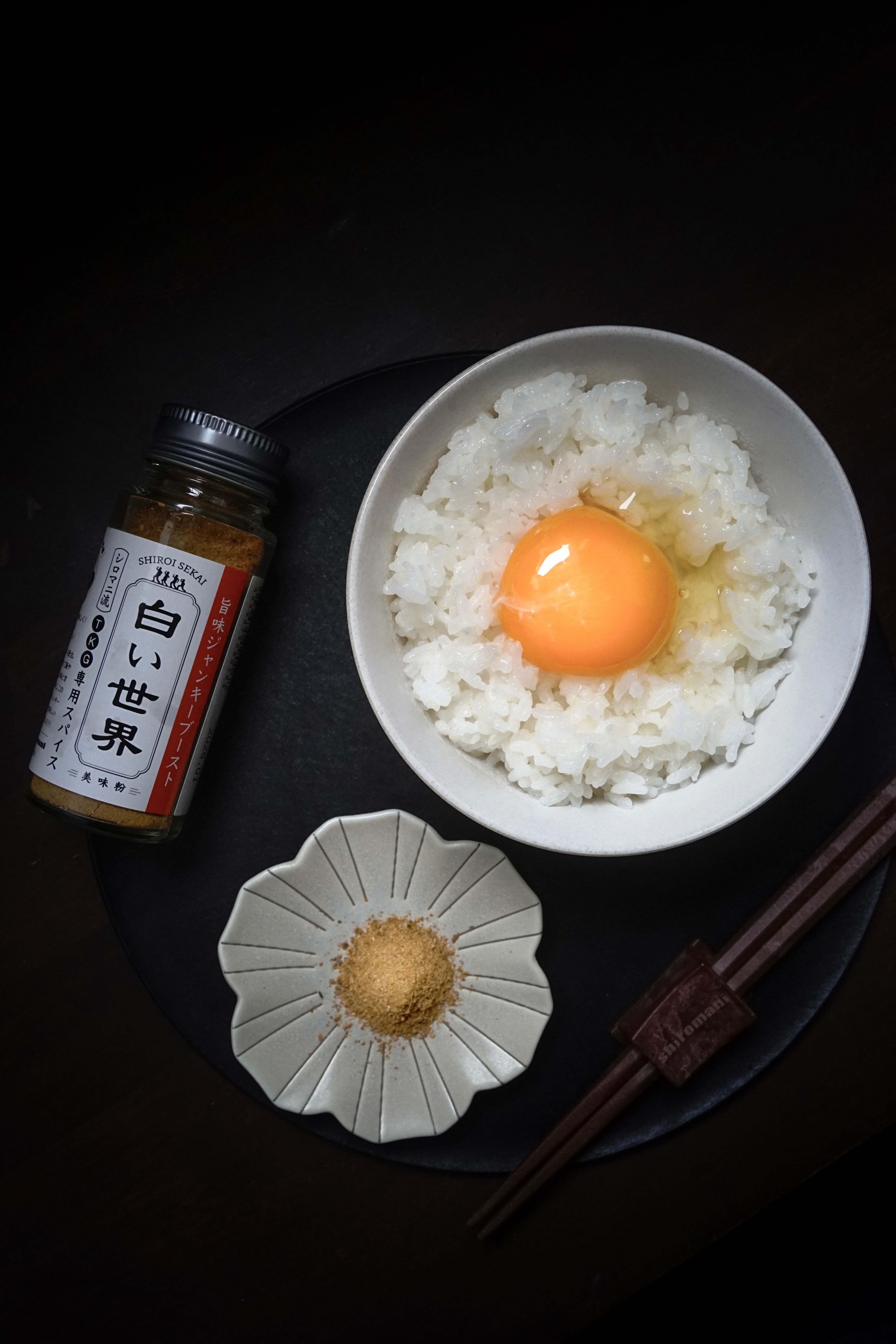 卵かけご飯にたっぷりと白い世界をかけて召し上がってみて下さい。